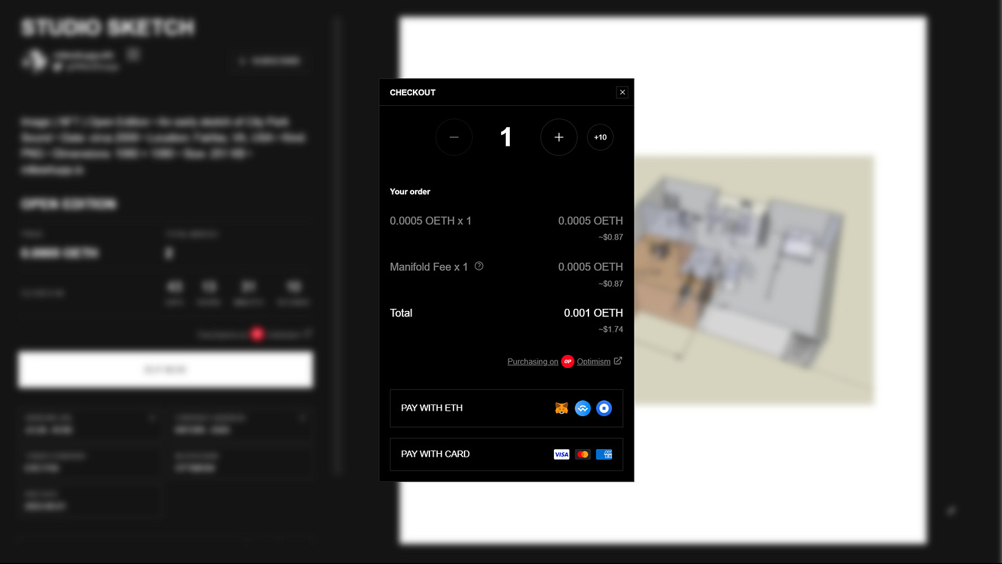 Web3 creative platform Manifold Studio now supports creation on the low-cost, lightning-fast Ethereum L2 blockchain powered by Optimism. Deploy smart contracts and create NFTs at a fraction of the cost typical for Ethereum Mainnet. And Optimism brings support for payment by credit card, Apple Pay and Google Wallet, powered by Crossmint.