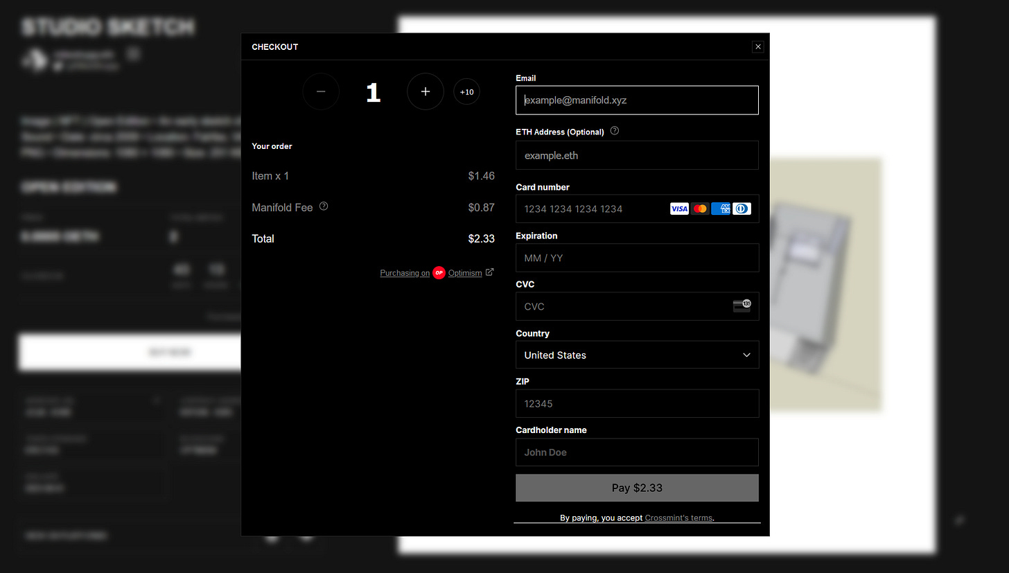 The credit card, Apple Pay, or Google Wallet payment flow, by Crossmint, is extremely well done, and automatically sets up a custodial wallet for users who are new to web3: